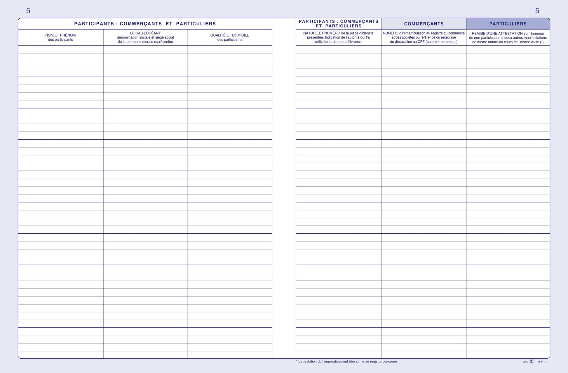 Caractéristiques : Comporte 40 tableaux foliotés de 1 à 40. Registre listant les raisons sociales, immatriculations au registre du commerce et les pièces d'identité des participants aux manifestations publiques