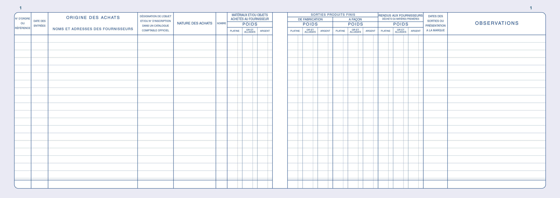 Registre livre de police métaux précieux - fabrications - Réf: 14162