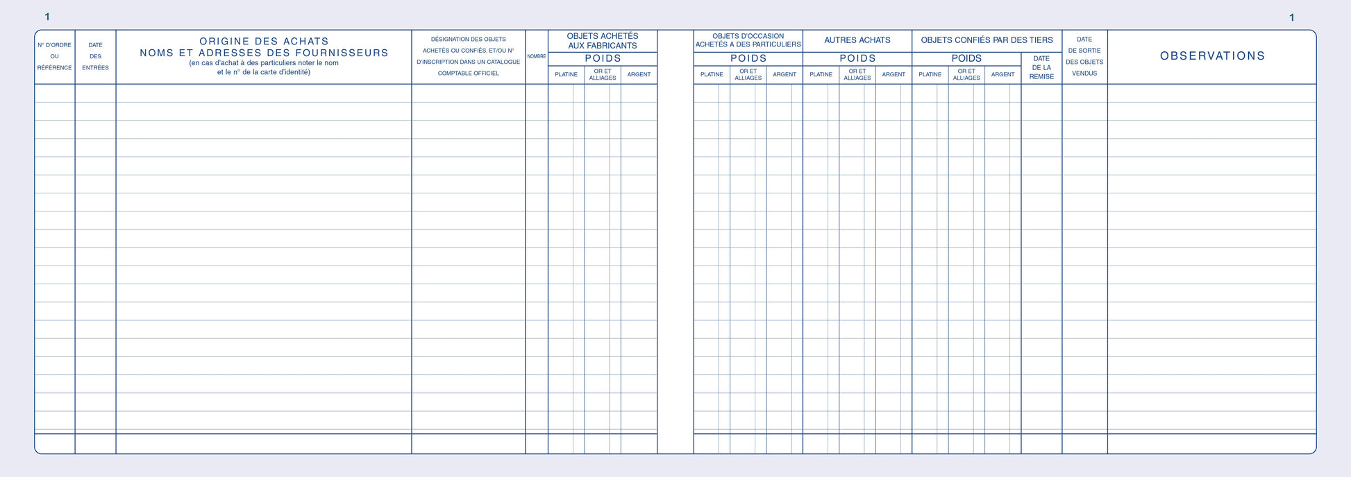 Registre livre de police métaux précieux - ventes et achats - Réf: 14172