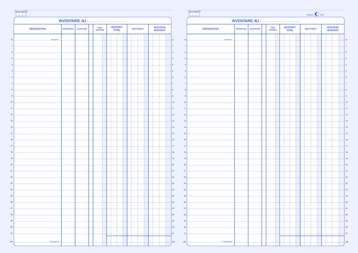 Caractéristiques : Comporte 80 tableaux foliotés listant les objets et quantités inventoriées