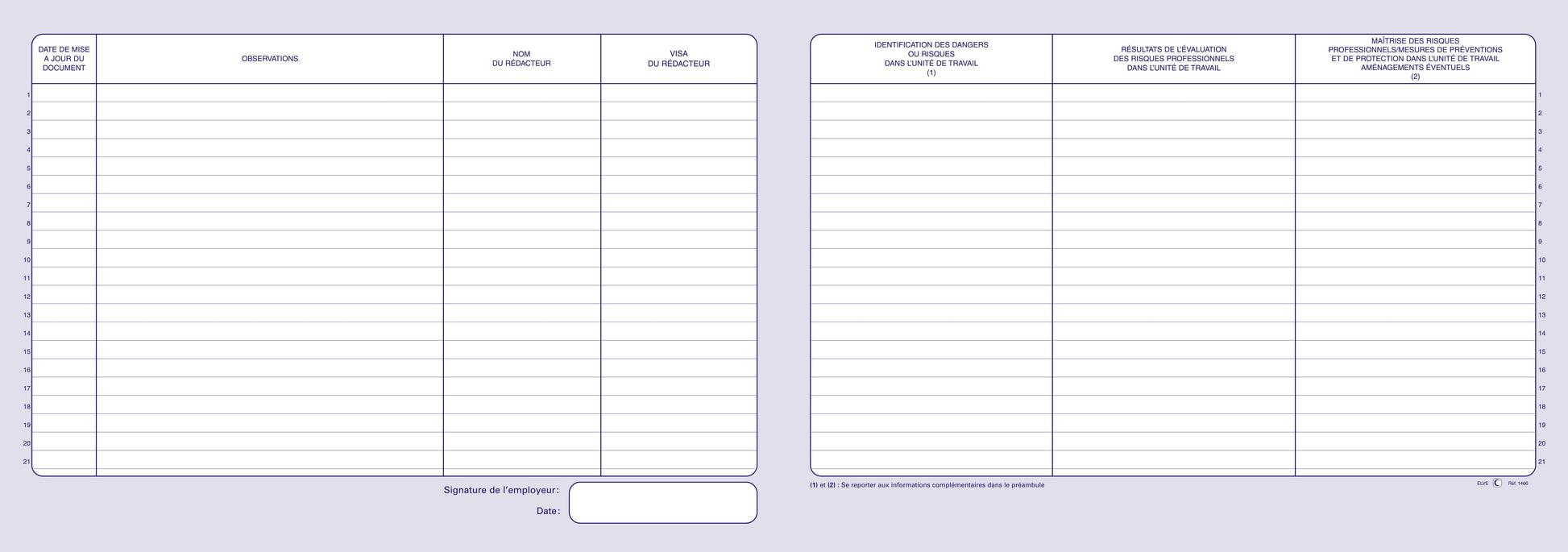 Registre résultats évaluation des risques professionnels - Ref : 1466