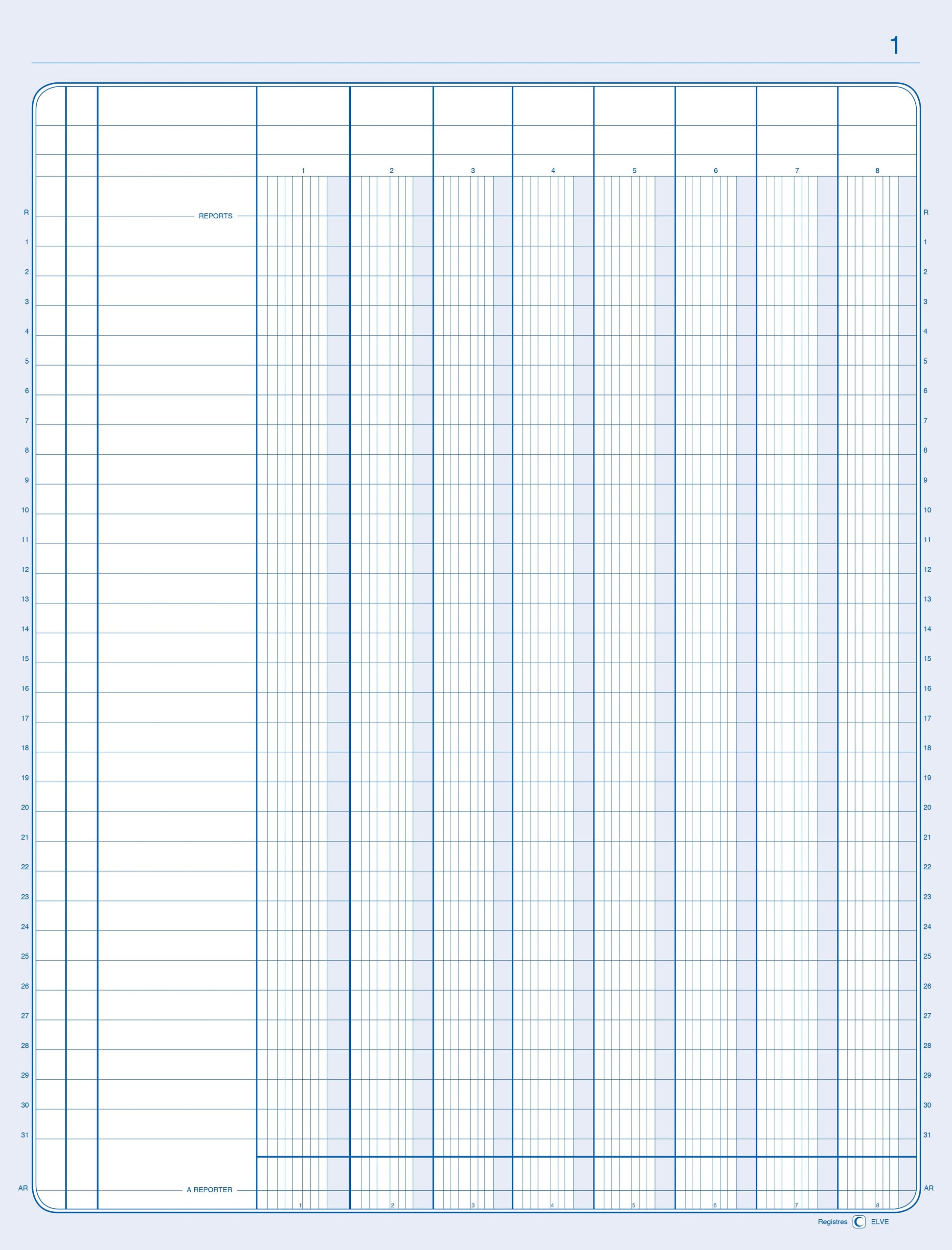 Caractéristiques : Piqûre RN 8 colonnes par page avec haut des colonnes pré-découpé pour n'écrire la tête de colonne qu'une seule fois - en portrait