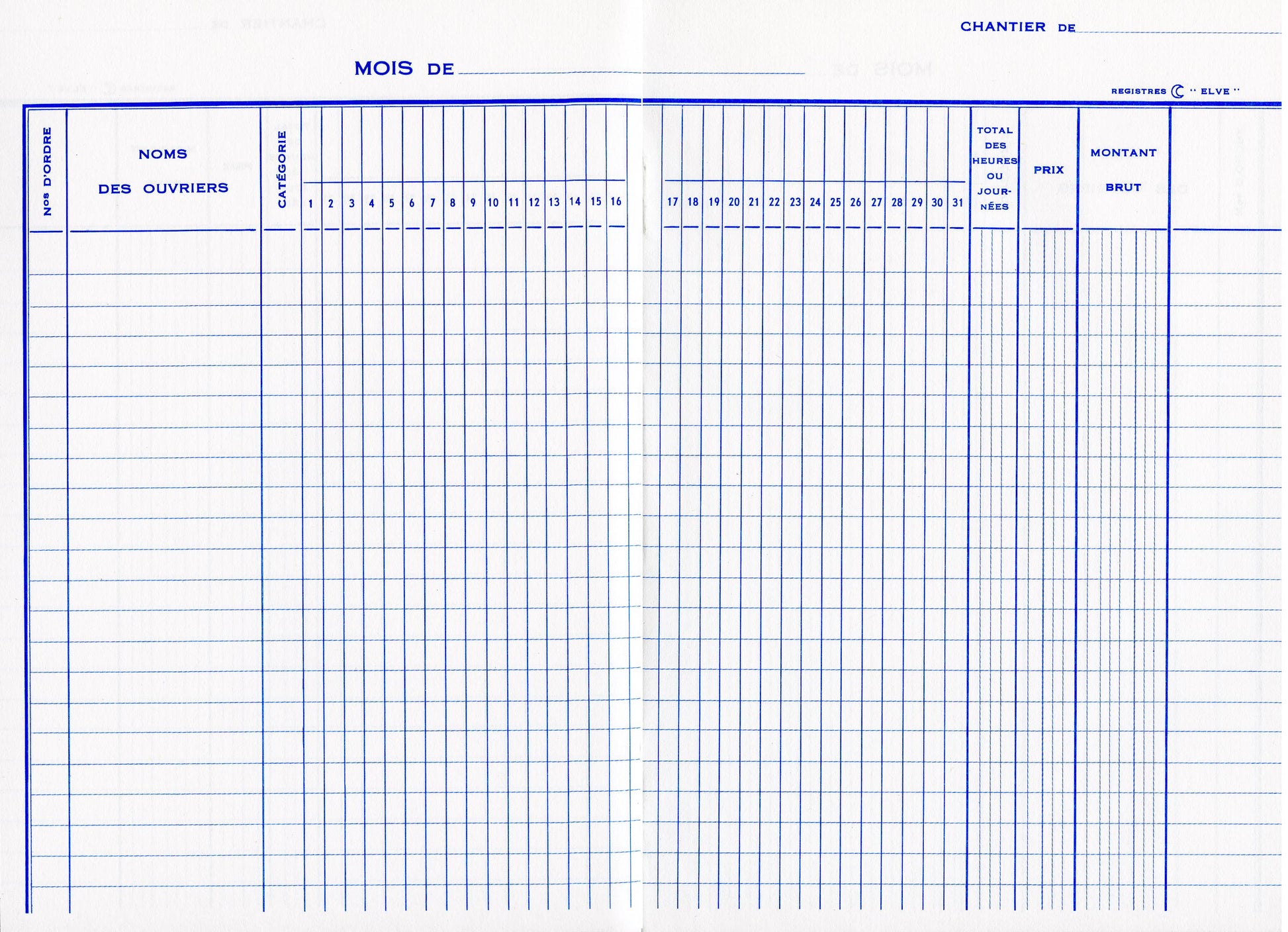 Caractéristiques : Carnet servant à recenser les heures effectuées sur les chantiers pour calculer la paye du mois
