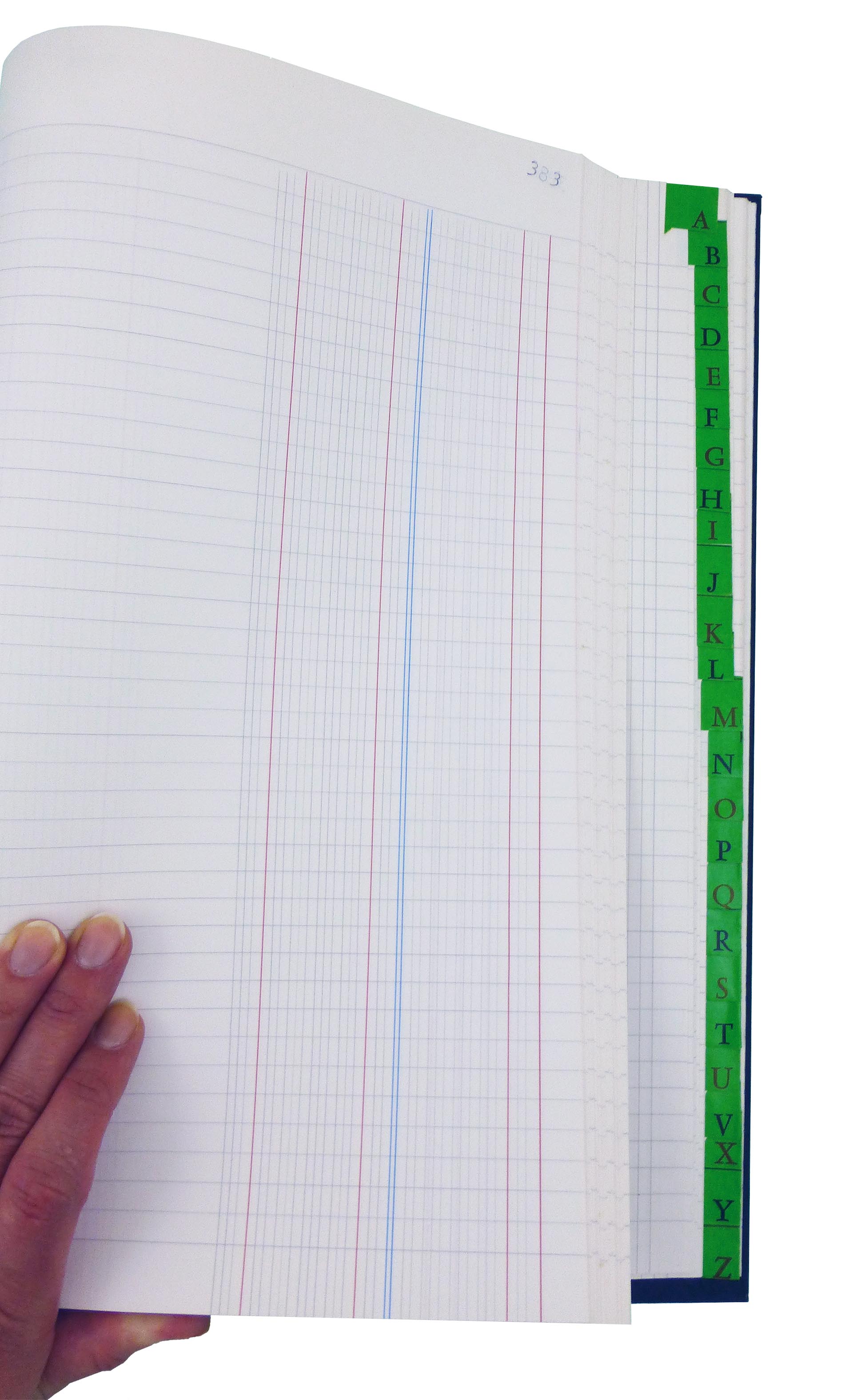 Caractéristiques : Registre composé d'une partie journal et d'une partie répertoire avec touches alphabétiques encollées